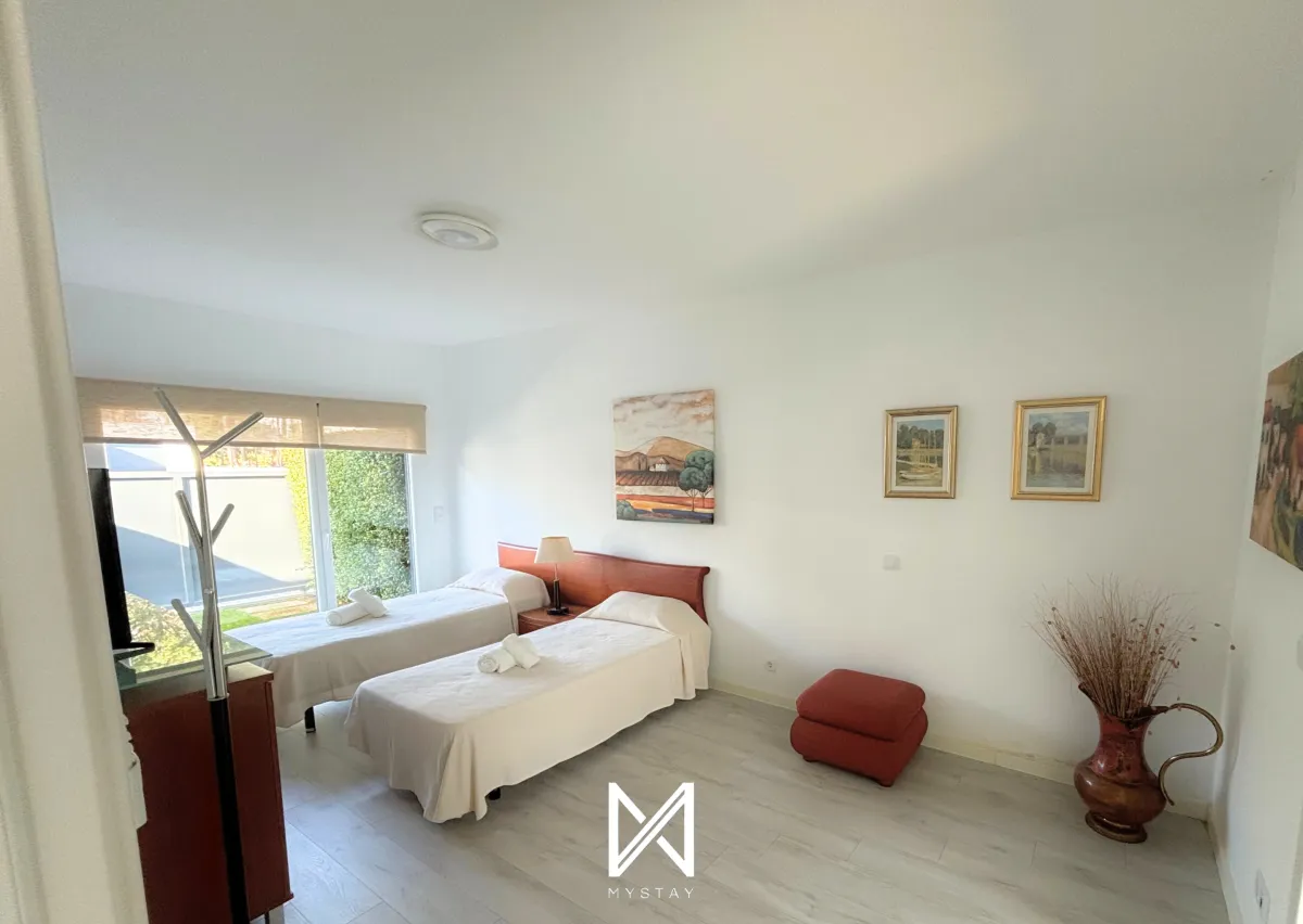 The house features two elegant suites, a cozy bedroom, and a shared bathroom, alongside a welcoming living room and a fully equipped kitchen to make every meal a delight. Outside, enjoy leisurely barbecues by the pool and soak in the peaceful surroundings. Designed as a single-story residence, the accommodation is wheelchair-friendly, ensuring accessibility and comfort for all guests.